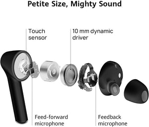 - Professional active noise cancellation: While the outward-facing mic is detecting ambient noise to actively counter with the anti-noise, the inward-facing mic is picking up the rest noise in your ears for further cancellation