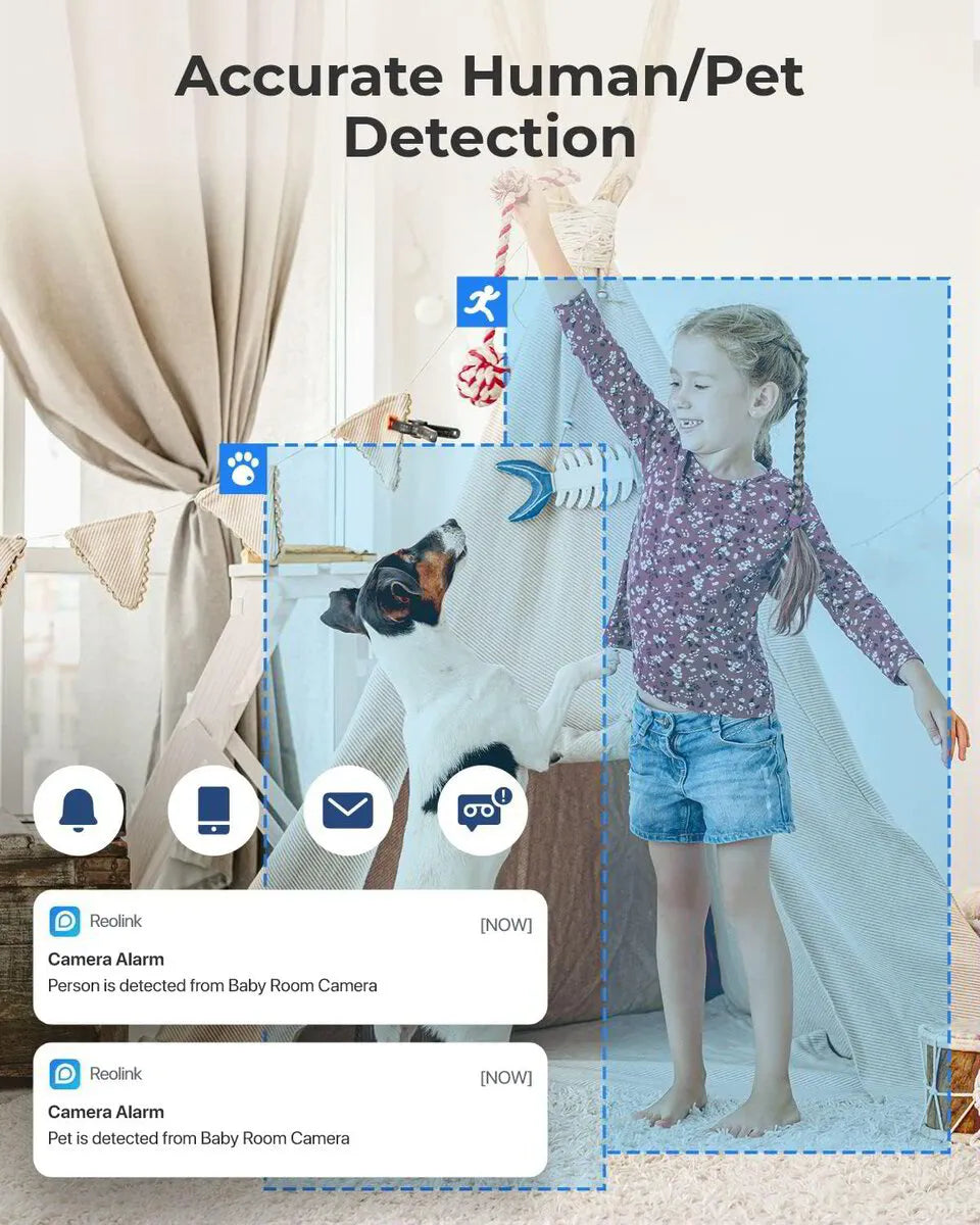 Smart AI Person & Pet Detection – Reduce false alerts and receive accurate notifications for human or pet movements.