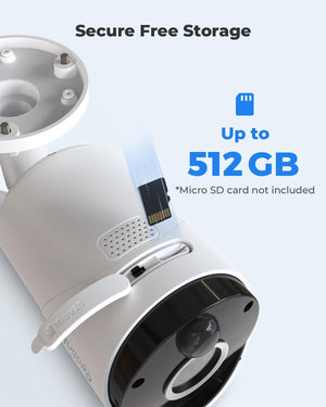 Local Storage for Privacy: Supports micro SD card (up to 128GB, not included) for private, secure footage — no subscription required.
