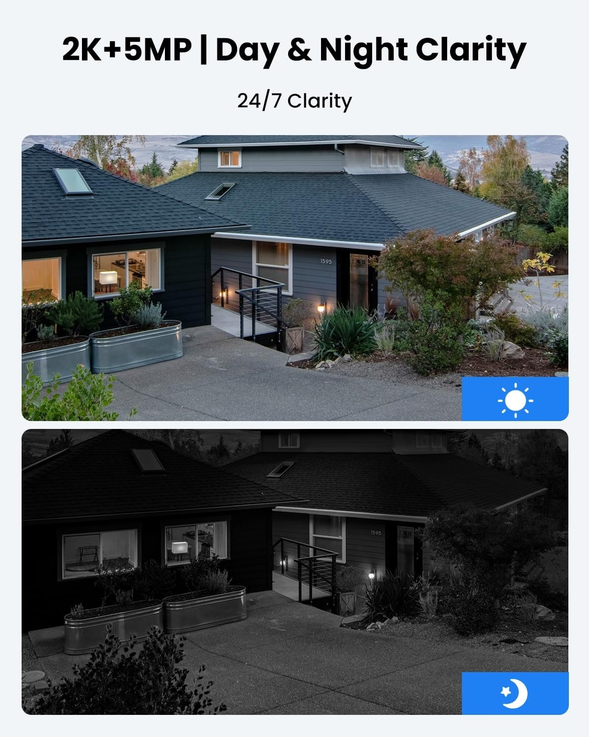 2K 3MP HD Resolution: Delivers sharp, detailed footage with 33ft infrared night vision for clear viewing day and night.