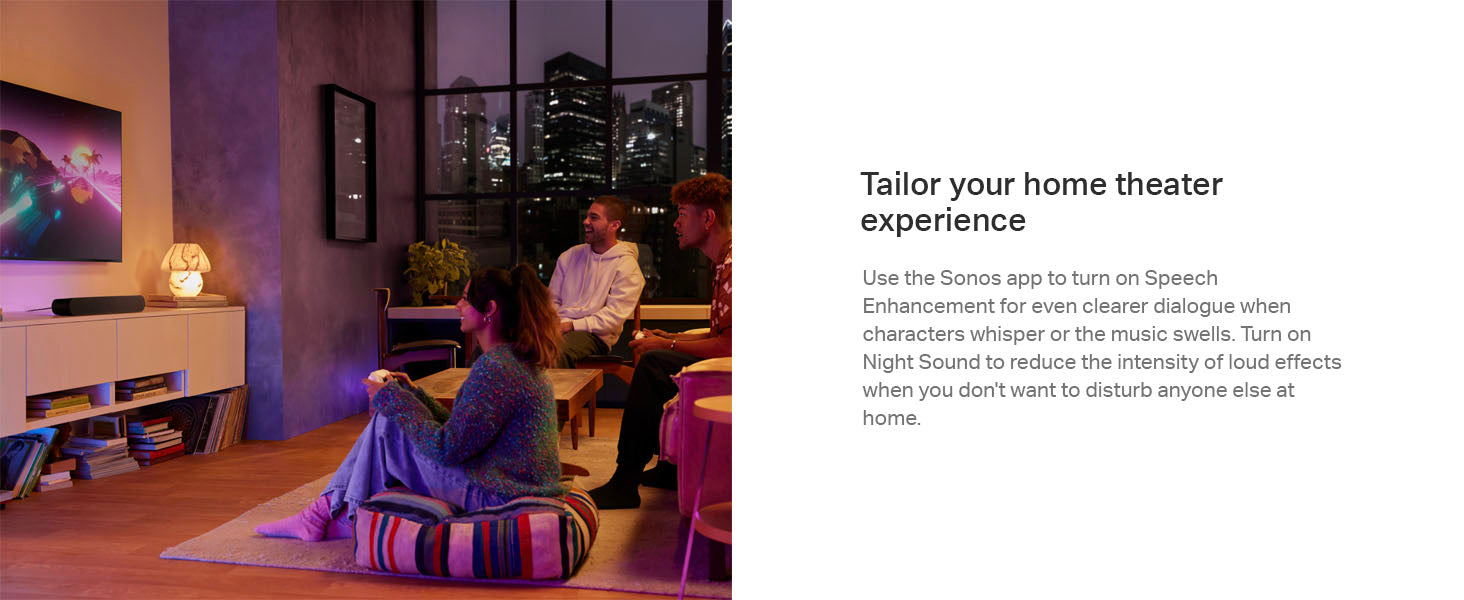 Enjoy dynamic sound with a wide soundstage, bringing movies and music to life with impressive clarity and depth. The simple two-cable setup and easy control through the Sonos app make installation quick and hassle-free.