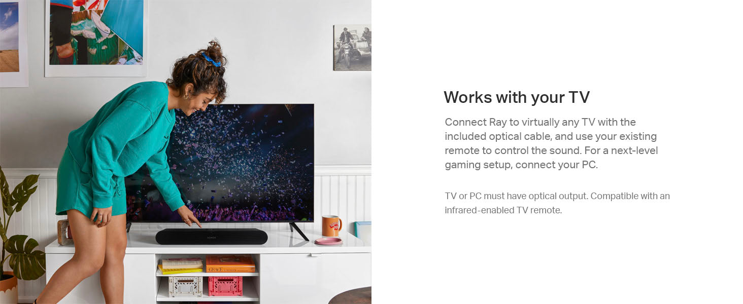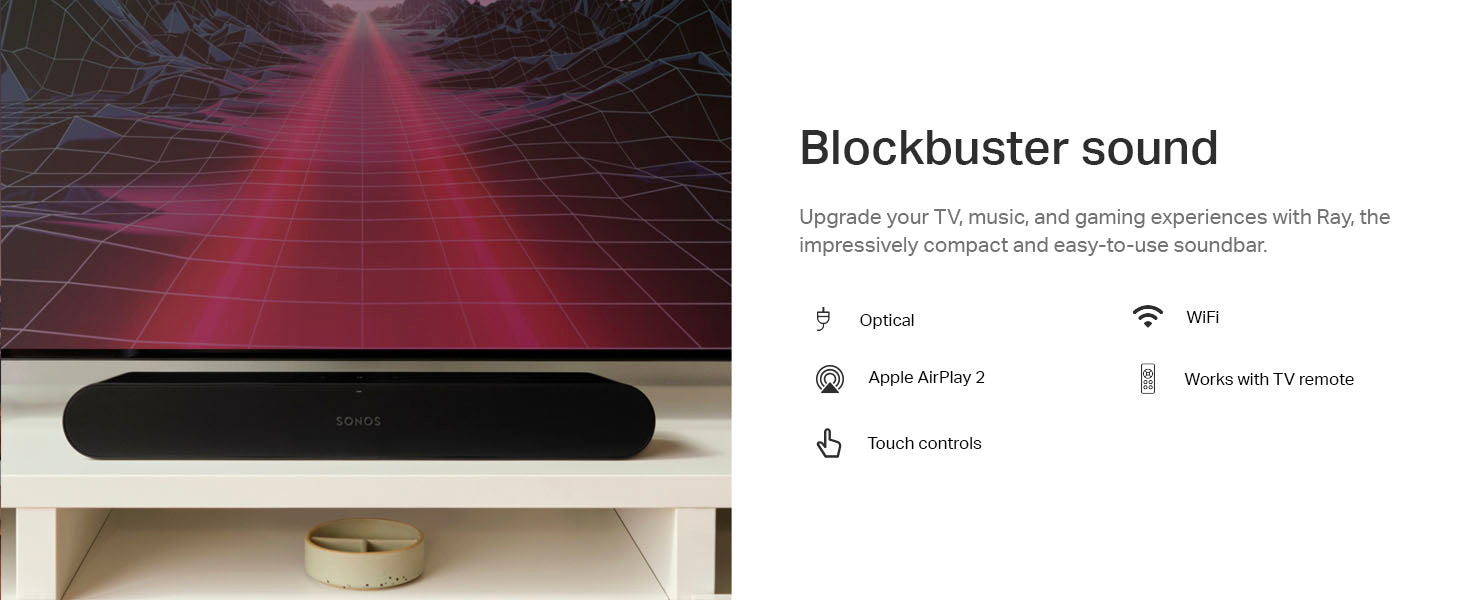 Sonos Ray Compact Soundbar – Black | Premium TV and Music Speaker System