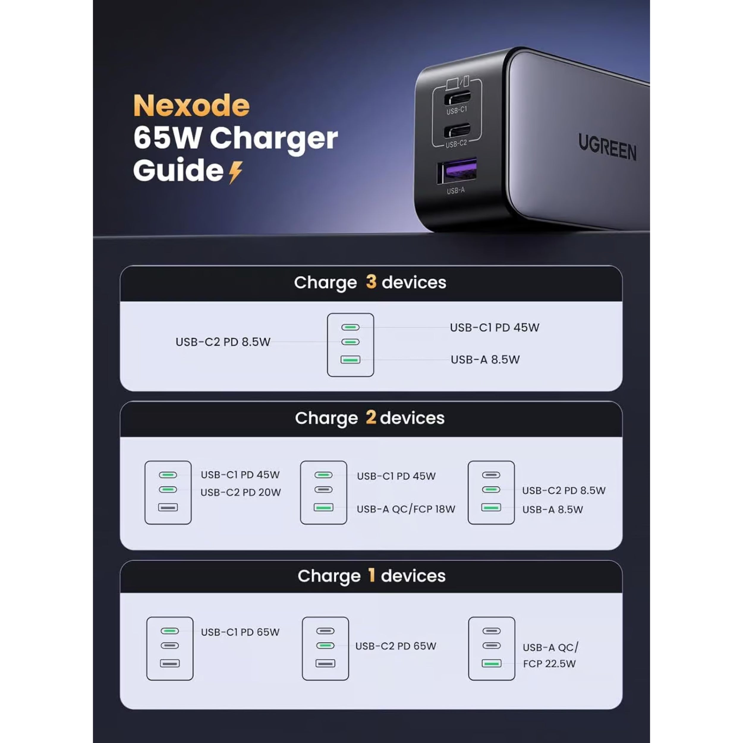 Power up all your devices with the UGREEN Nexode 65W GaN Fast Charger. Designed for efficiency, portability, and wide compatibility, this compact charger is ideal for home, office, and travel.