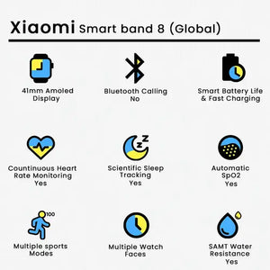 Experience next-level fitness tracking and style with the Xiaomi Smart Band 8 (Global Edition). Designed for both performance and comfort, this premium smart band features a vibrant AMOLED 41mm display, 100+ sports modes, and comprehensive health monitoring, making it your ideal daily fitness companion.